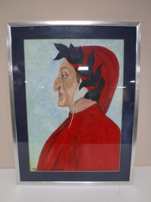 A framed A. Galbraith oil signed by the artist, 'Dante, After Botticelli'