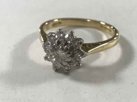 The ring is in good condition. It is size H/I. The principal stone weighs approximately 0.2 carat. The stone has a minor black inclusion which is barely visible to the naked eye. It is colour H/I and clarity VS1/SI1. The other stones are comparable in colour and clarity. The ring ring presents very well to the naked eye. The shank is stamped '18' although the hallmarks are partially rubbed.