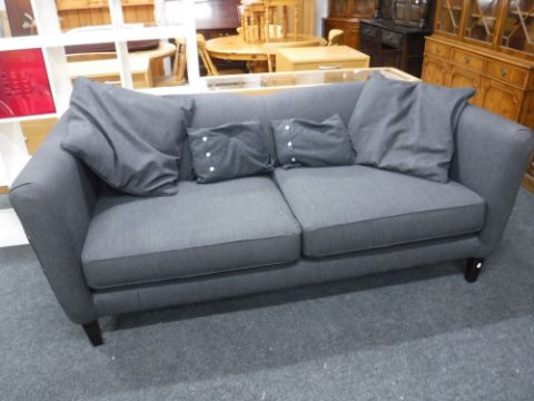 A Marks and Spencers two seater settee with scatter cushions (leg damaged)