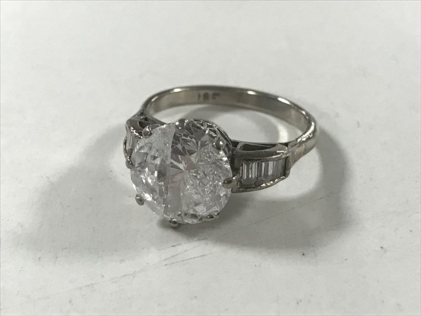 An 18ct white gold dress ring with diamond set shoulders, size M