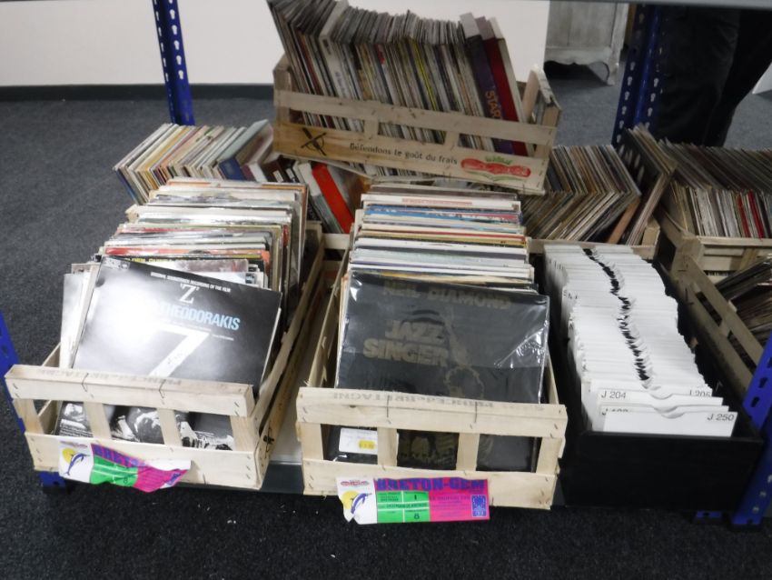 Twenty four boxes containing LP records and 7" singles : various (Viewing Essential)