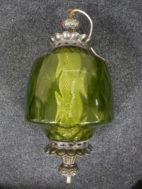 A green glass light fitting