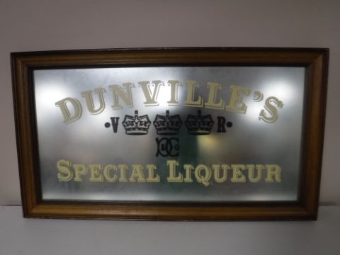 A reproduction framed Dunville's Special Liqueur advertising mirror