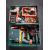 Two crates containing power tools, hand tools, lights etc and three boxes of tools, wrench set, router etc