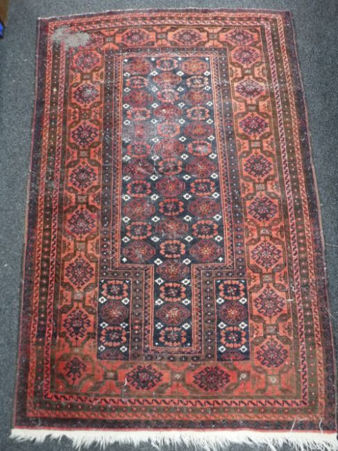 An Afghan prayer rug, 154cm by 100cm (a/f)