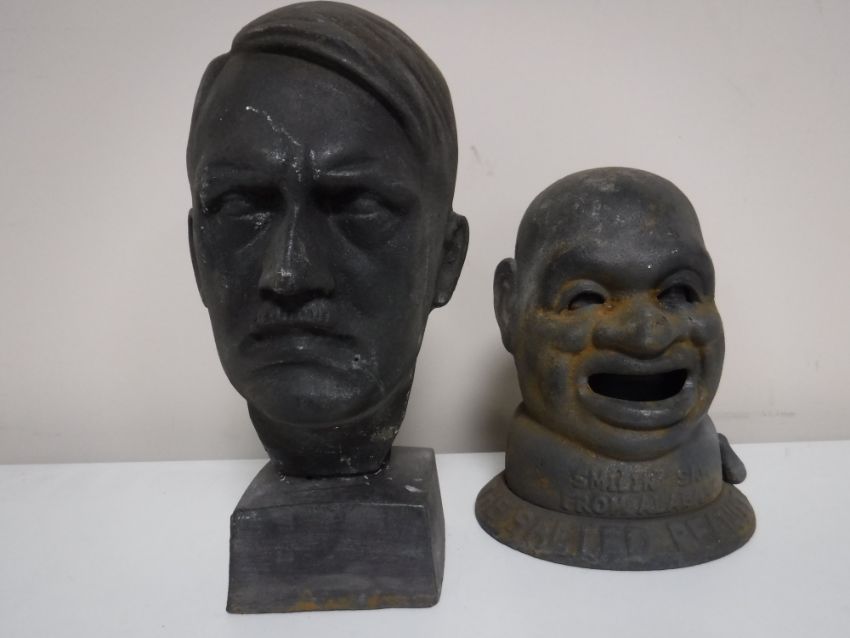 A cast metal bust of Hitler, together with a cast metal salted peanuts money box