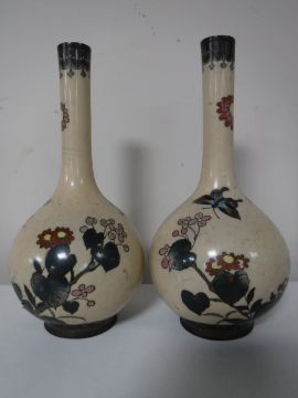One with substantial dent. Both with minor dents and flaws to enamel. See images.