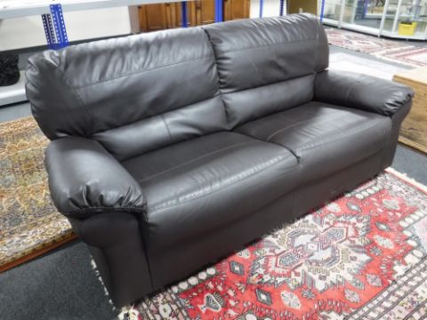 A contemporary brown leather two seater settee together with similar swivel armchair with stool
