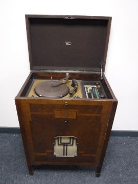 A Marconi inlaid walnut gramophone cabinet with a Collaro turntable