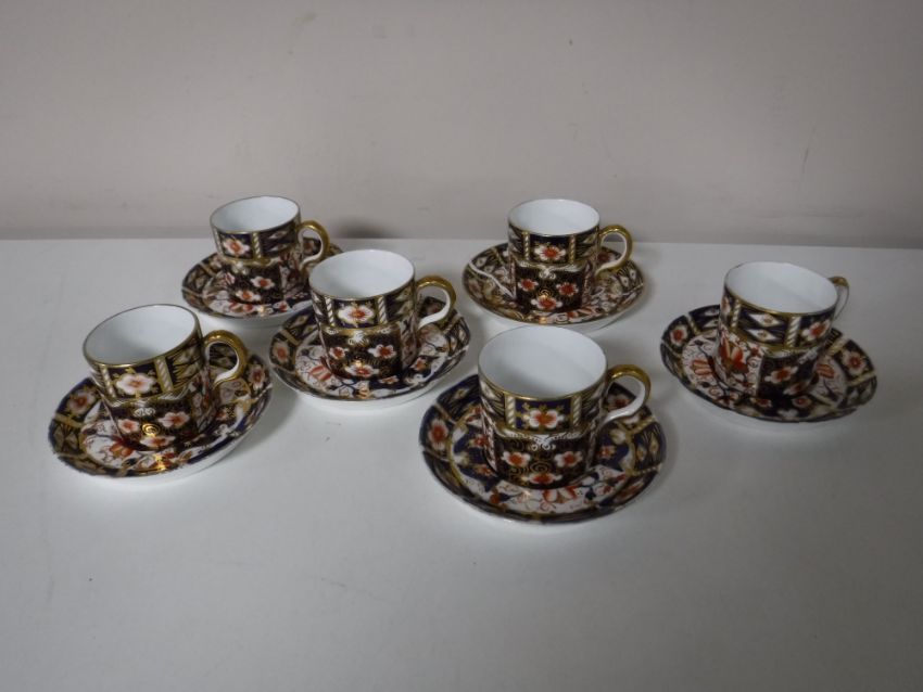 Six Royal Crown Derby Imari coffee cans with saucers, pattern 2451 (12)