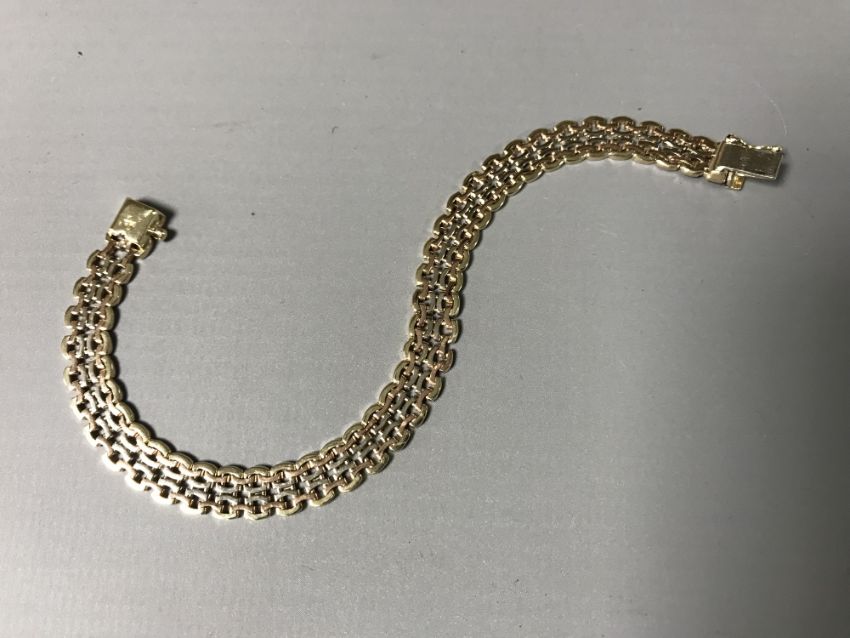 A three-tone 9ct gold bracelet, 11.6g.