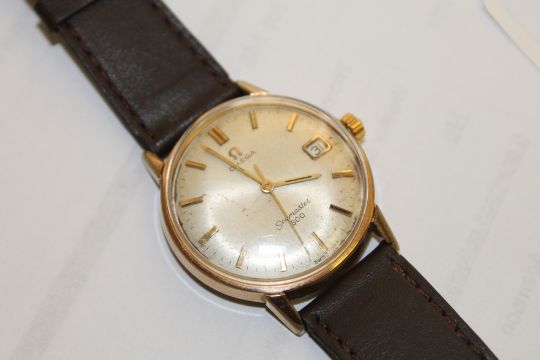 Gold-plated and stainless steel case. Case 34mm. Silvered dial is discoloured and somewhat dirty. Case and glass with typical fine surface scratches. Winds, runs and adjusts. The date is changing correctly. Movement clean, numbered 22,379,644.