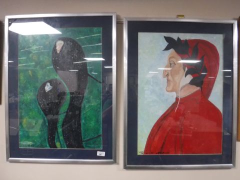Tow framed A. Galbraith oils, 'Dante, after Botticelli' and 'Mermaids, After Gustav Kimt', signed by the artist