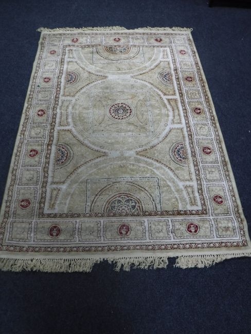 A machine made rug of Indian design, on beige ground, 228cm x 156cm