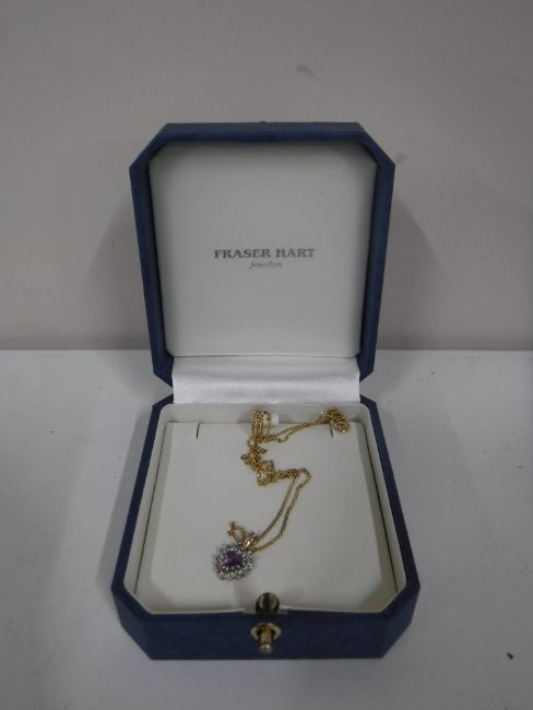 An amethyst pendant on 9ct gold chain