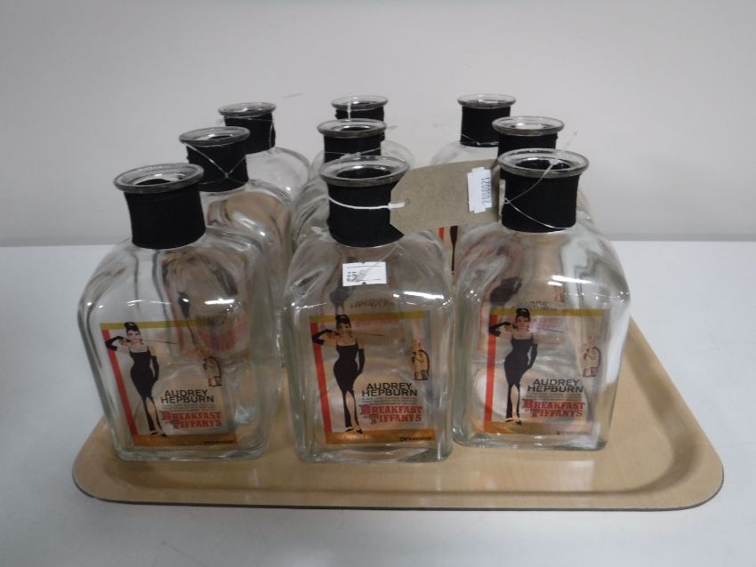 Nine Audrey Hepburn 'Breakfast at Tiffany's' decanters