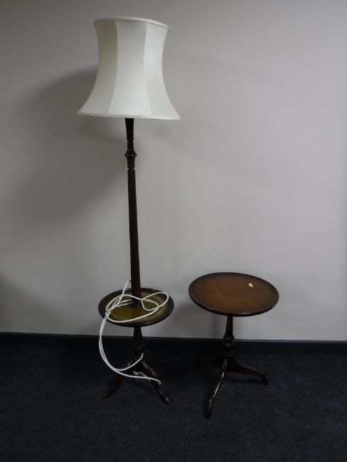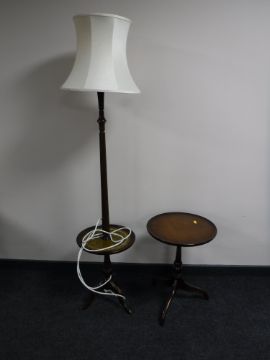 A mahogany standard lamp occasional table and a pedestal table