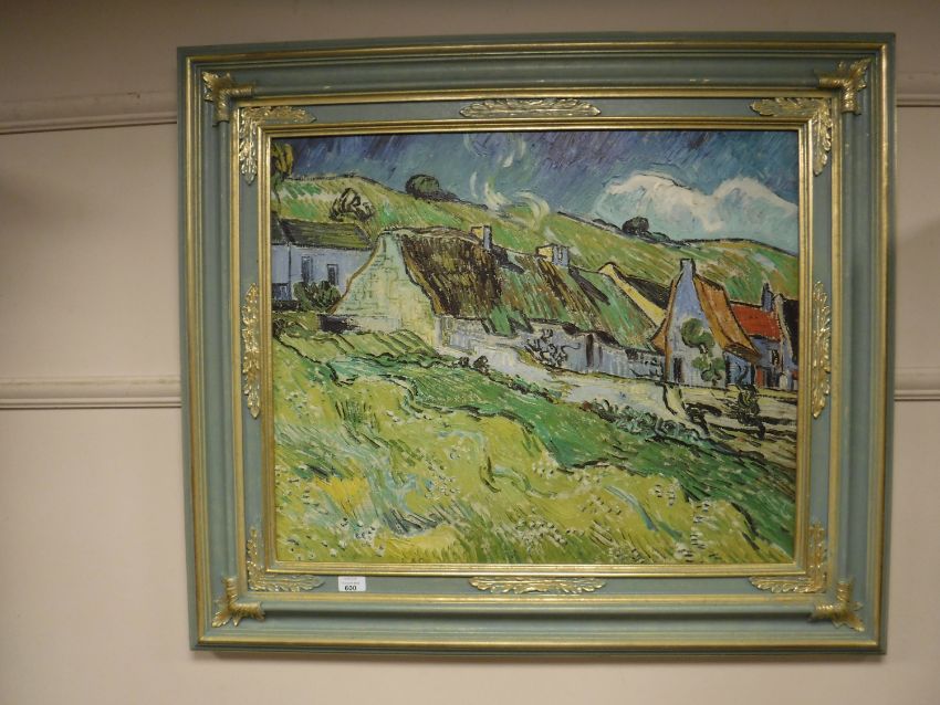An Artagraph Edition : Cottages on a hillside, framed.