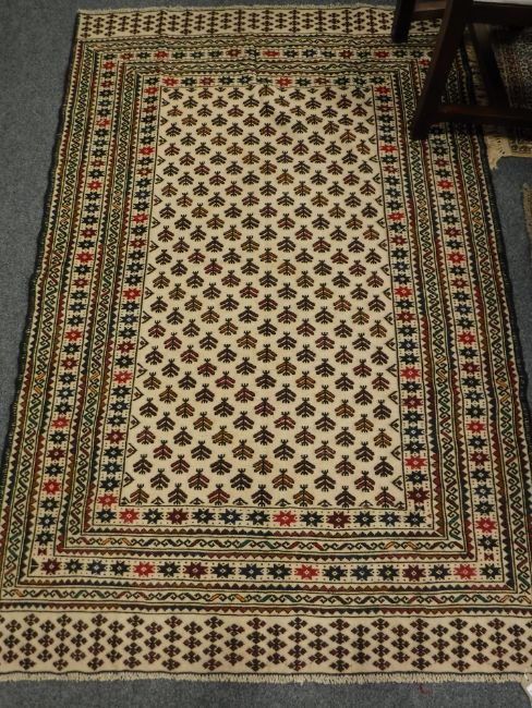 A Sumak Kilim rug on cream ground, 196cm x 126cm