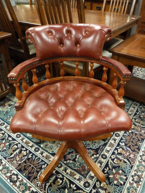 A chesterfield style buttoned burgundy leather captain's chair, width 65 cm