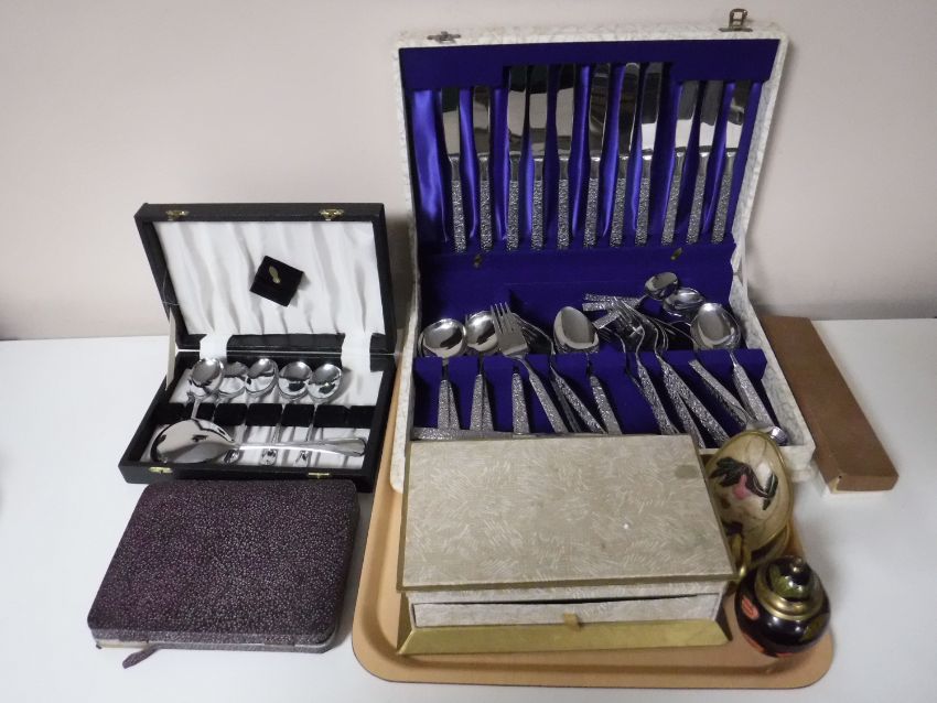 The larger canteen is stamped 'Flower Garden' and 'Japan'. The others are variuosly stamped Sheffield but with no maker's names.