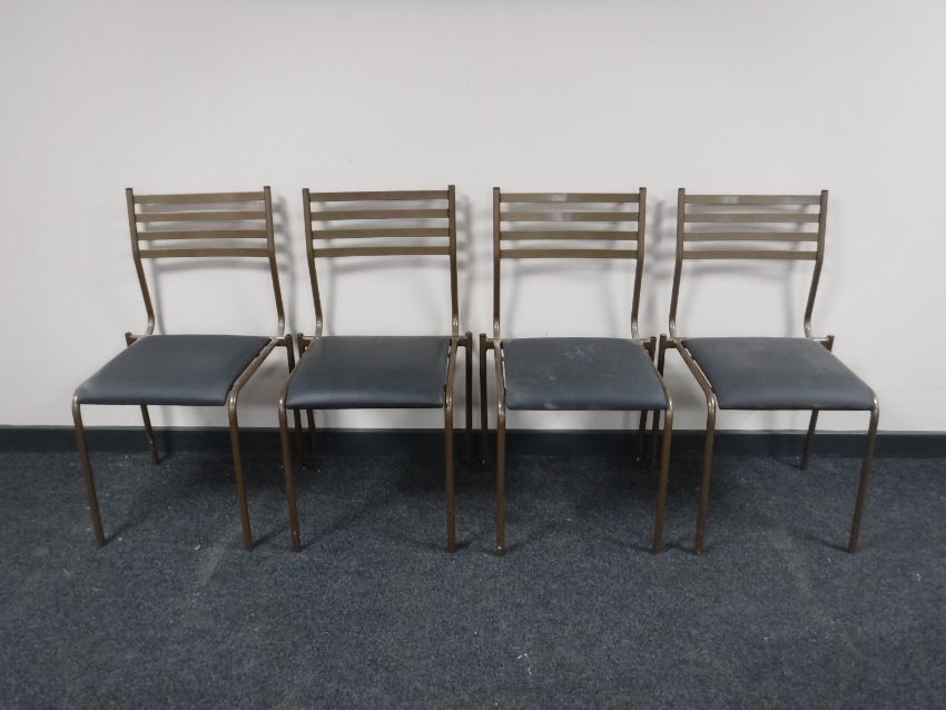 A set of nine metal framed stacking chairs
