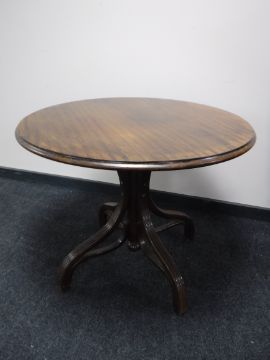 A circular bentwood pedestal table