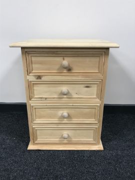 An unfinished pine four drawer chest