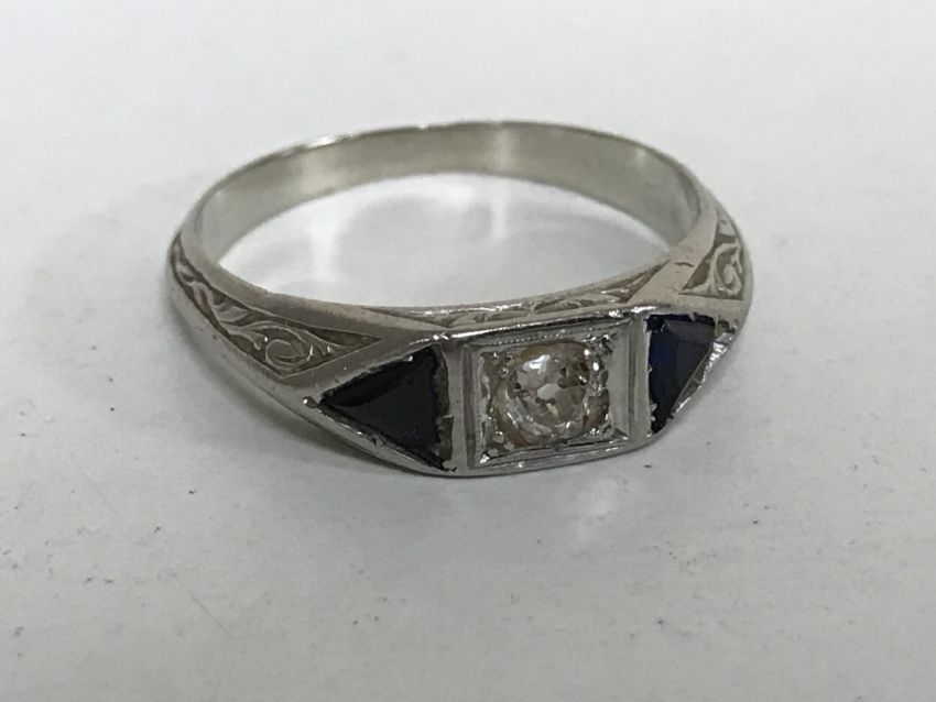 A platinum diamond and sapphire ring