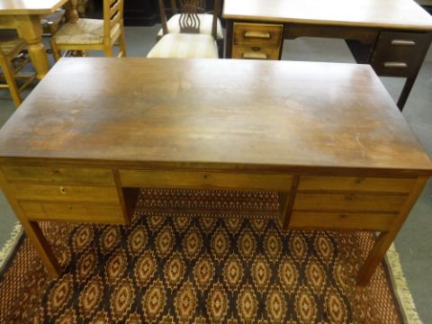 A mid 20th century teak desk fitted seven drawers