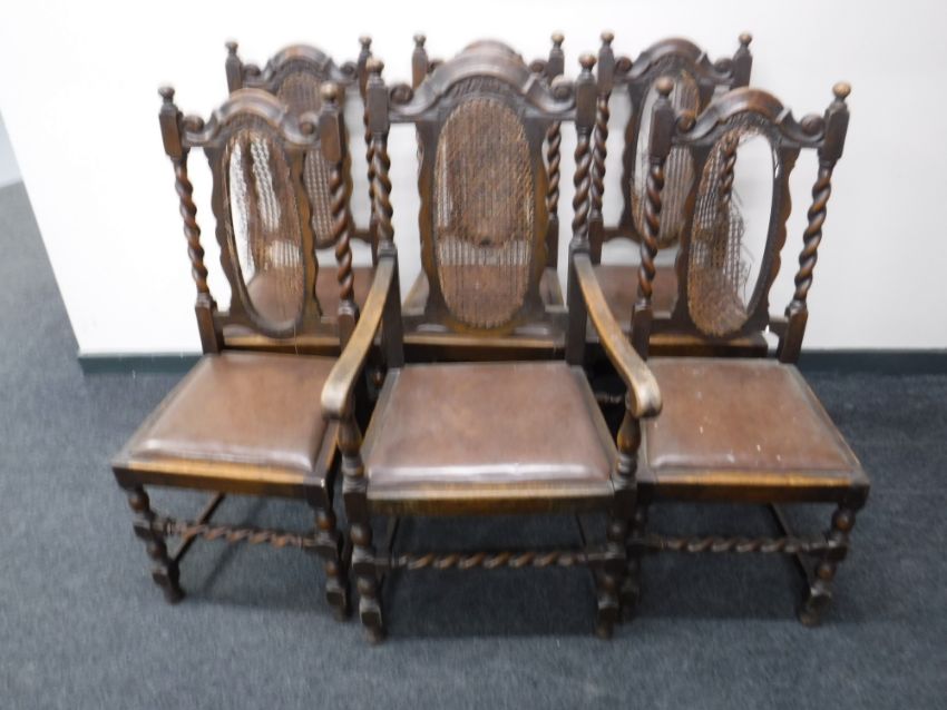 A set of six oak barley twist dining chairs