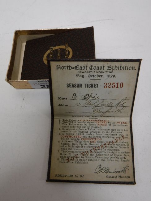 Two North East Coast Exhibition 1929 season tickets
