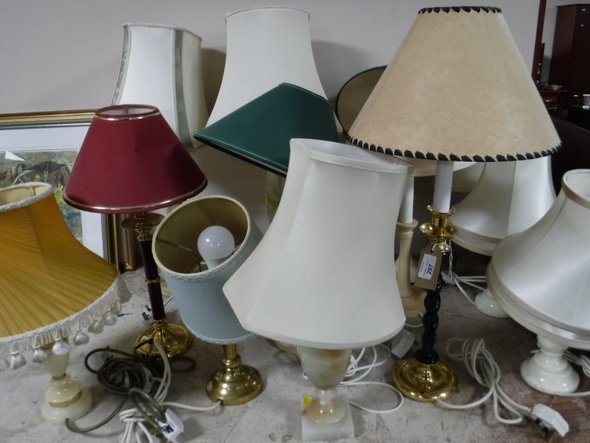 Three pairs of marble table lamps and seven other assorted lamps