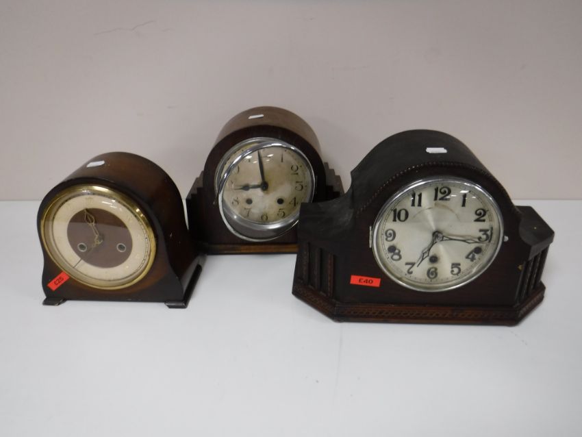 Two early twentieth century mantel clocks, together with a walnut cased mantel clock