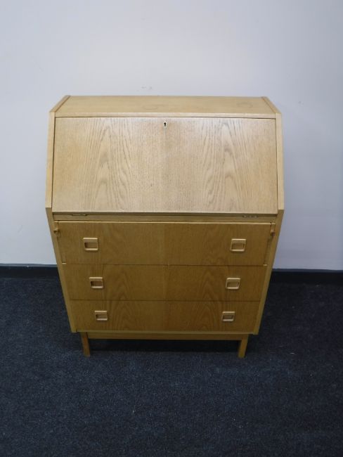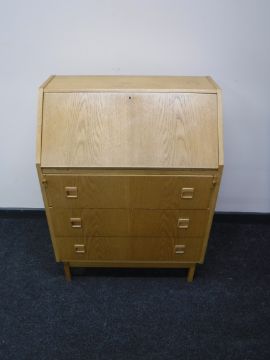A mid 20th century blond oak bureau
