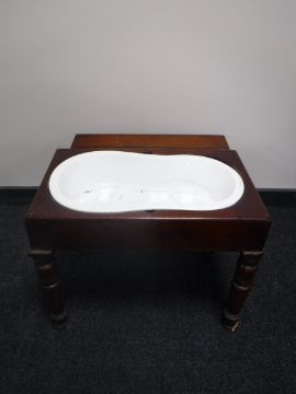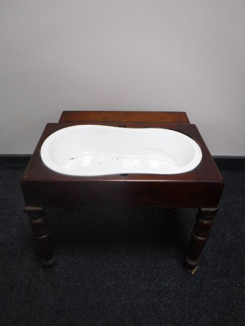 A Victorian mahogany child's bath table with liner