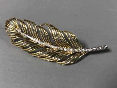 An 18ct gold diamond set leaf brooch, 7.6g.