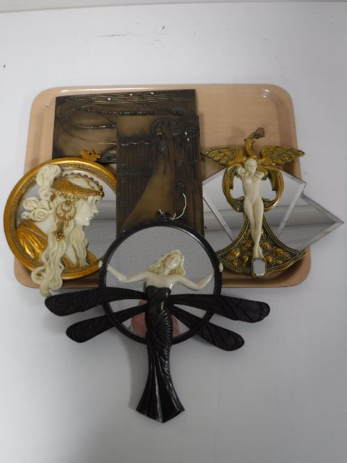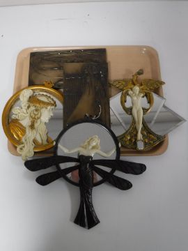 A pair of contemporary Art Deco wall plaques, together with three Art Deco mirrors