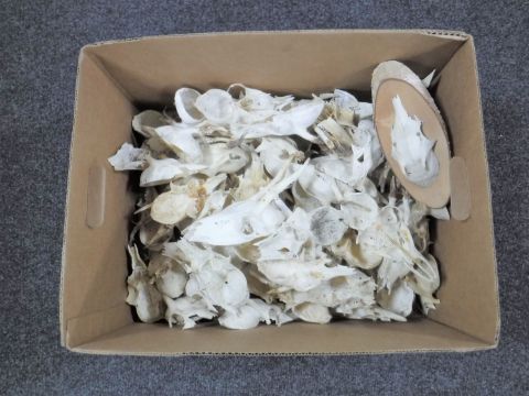 Taxidermy: A box of a large quantity of Rowe buck skulls