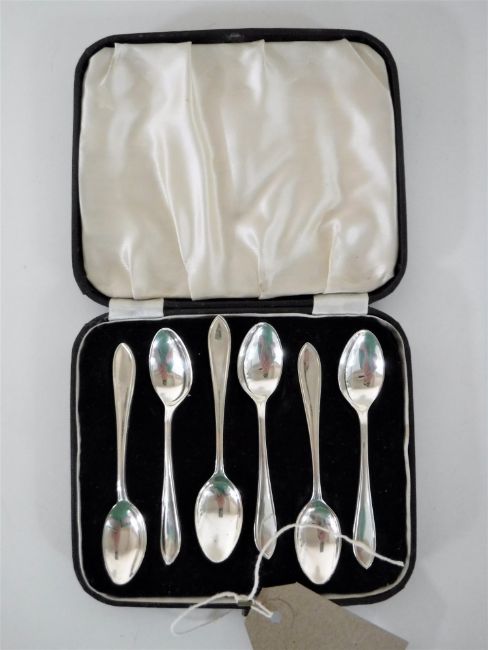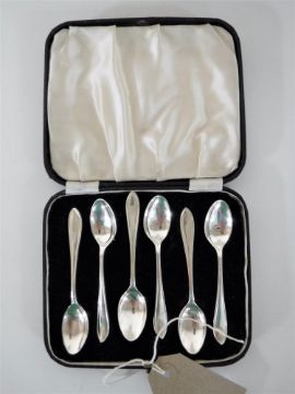 A cased set of six silver teaspoons