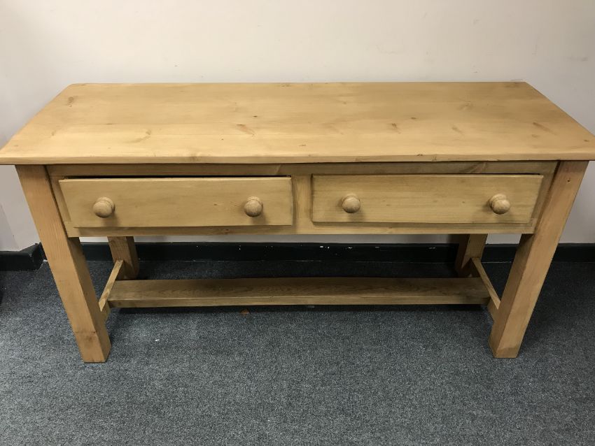A reclaimed pine dresser base fitted with two drawers, width 146 cm