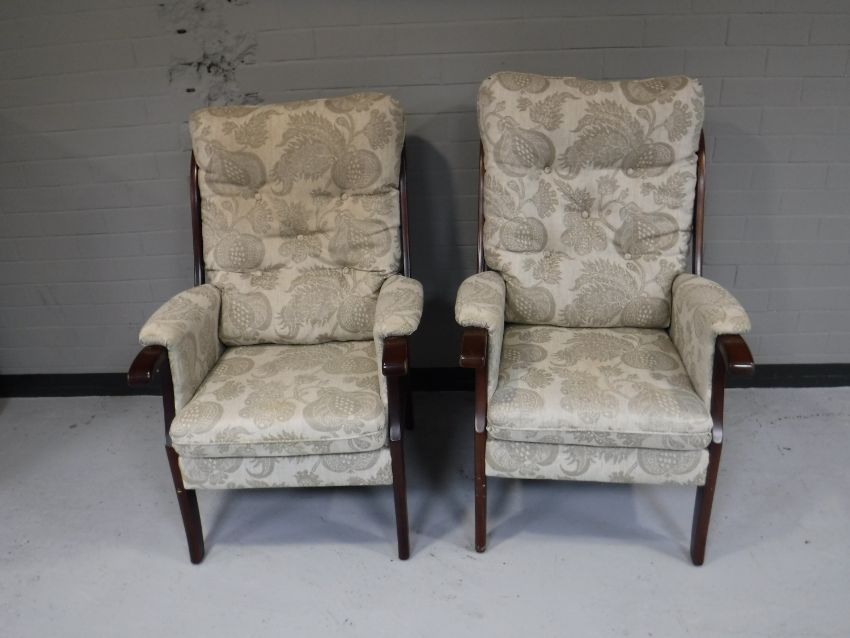A pair of button back fire side chairs