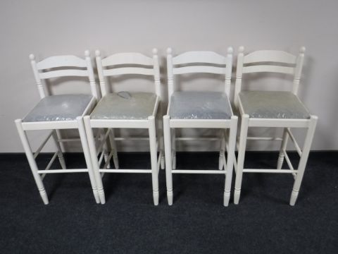 A set of four white bar stools