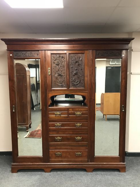 A late Victorian mahogany compactum wardrobe, width 194 cm