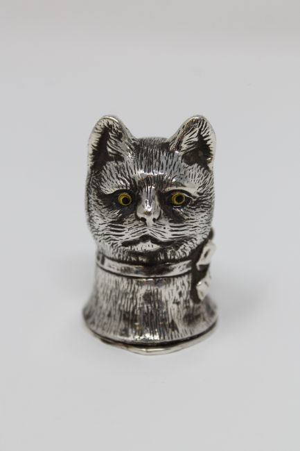 A novelty silver vesta case in the form of a cat, London marks, height 3.5cm