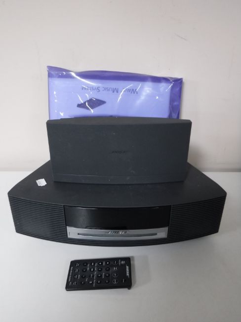A Bose Wave music system with speaker, leads, instructions and remote