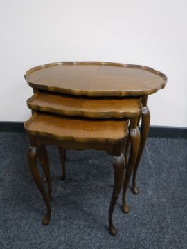 A nest of three walnut pie crust edge tables