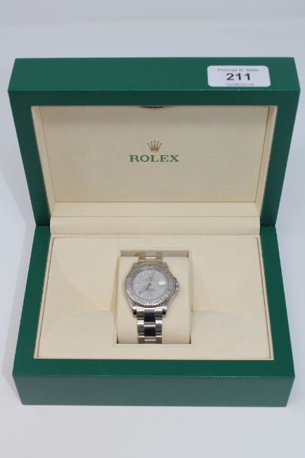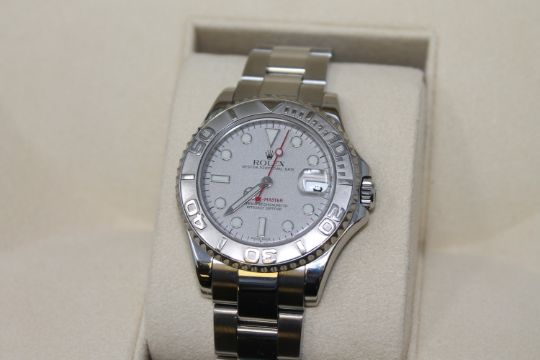 A Stainless Steel Unisex Rolex Automatic Calendar Wristwatch, model; Oyster Perpetual Date Yachtmaster, Superlative Chronometer Officially Certified, ref. 168622, 35mm case, on Rolex stainless steel bracelet with deployant clasp, in Rolex box with booklet and guarantee card