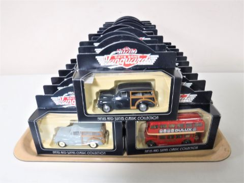 A tray containing thirty boxed Vanguards Days Gone diecast vehicles