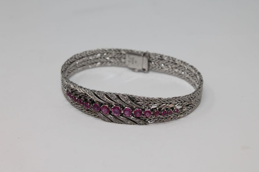 A fine quality ruby and diamond bracelet in 18ct white gold, 52g.